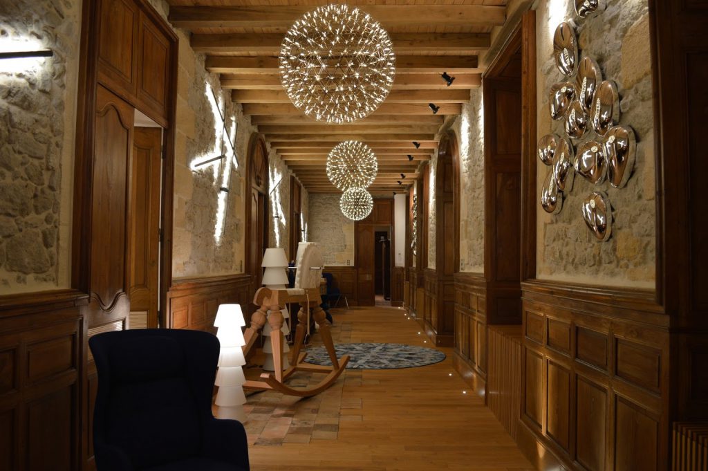 Le résultat est fabuleux et l’on ne peut que saluer le travail titanesque de l’architecte Guillaume Aubel (Beluga Studio). J’apprécie cette alliance subtile de modernité et d’ancien: ici une table rustique, là des luminaires ultra design, d’un côté une licorne à bascule (oui oui!) de l’autre une charpente plus que centenaire.