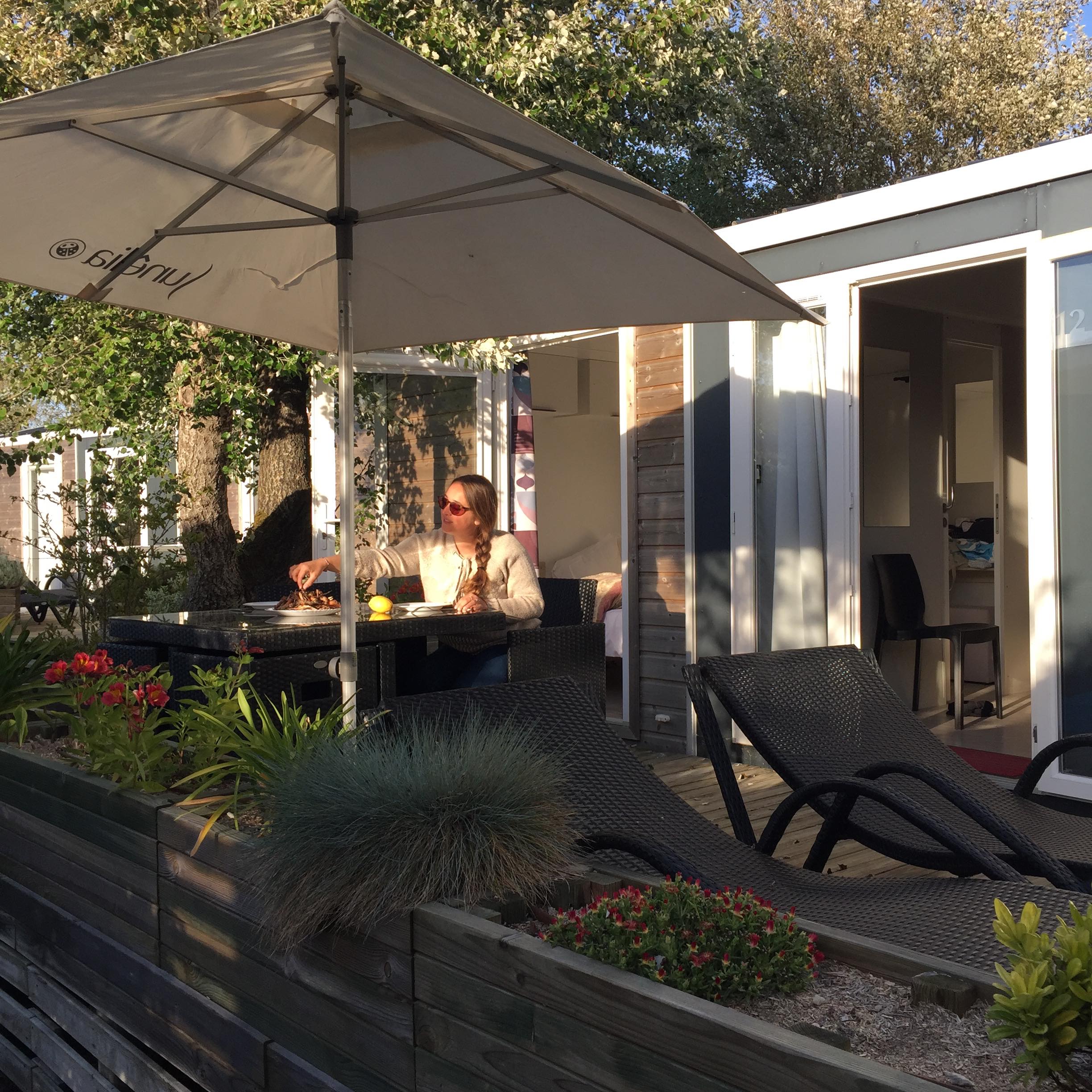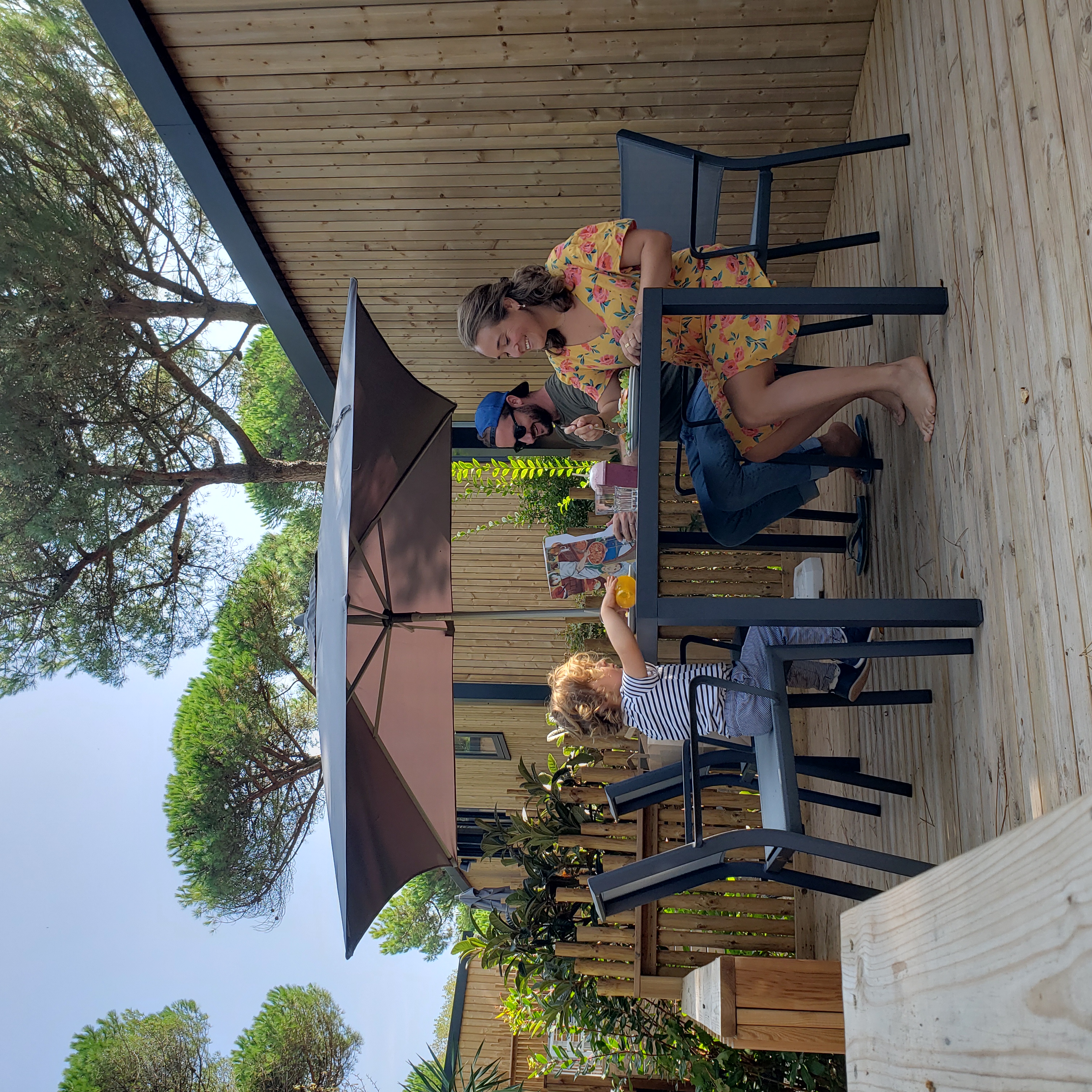 Update 2020 : cette année nous avons logé dans un mobil home Sunêlia Luxe Key West : 2 chambres, 2 salles de bain sur 40 m2, un intérieur design et une grande terrasse en bois donnant sur la forêt ! Les lits sont faits à l’arrivée, le linge de toilette est à disposition et le ménage de fin de séjour est pris en charge par le camping… autant vous dire que c’est le pied pour se relaxer à 100% ! Nous avons adoré ce mobil home aussi, et avons pris tous nos repas du petit-déjeuner au dîner sur la terrasse si agréable.