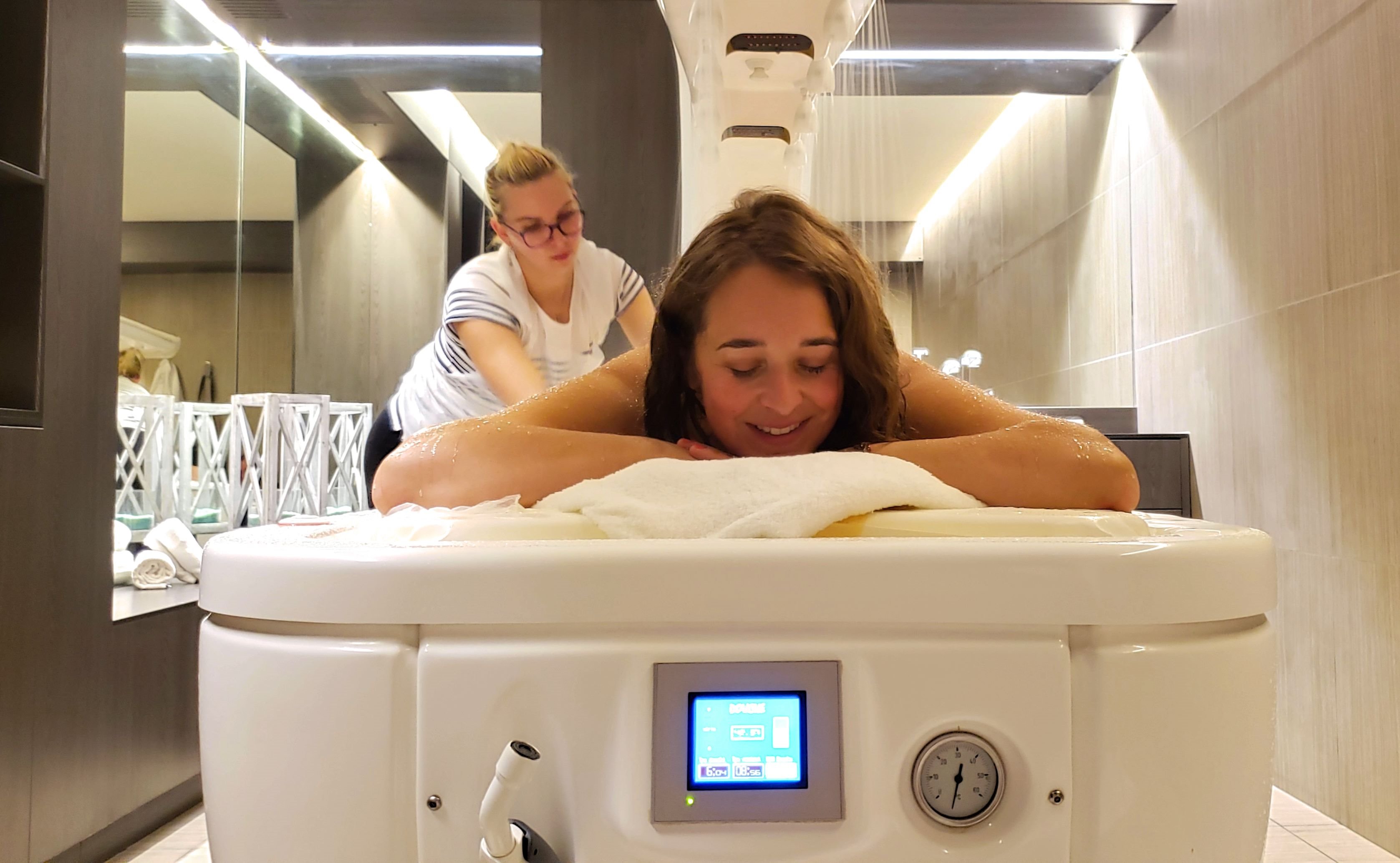 Par tous temps on s’octroiera un moment détente au spa Nuxe ou à la thalasso-spa marin de l’autre côté la route. Pour ma part j’ai testé cette deuxième option et je dois dire que la thalasso n’a rien à voir avec les thalassos classiques qui ont souvent un décor basique et une ambiance médicale. Ici on se croirait dans un spa, un institut de beauté. Beaucoup de bois, de lumières, des musiques d’ambiance toutes douces. Et puis après le soin, on fonce se baigner dans la piscine et on rejoint via un couloir de nage le grand jacuzzi extérieur. Quand il fait 5 degrés dehors, c’est un réel plaisir de barboter dans ce jacuzzi !