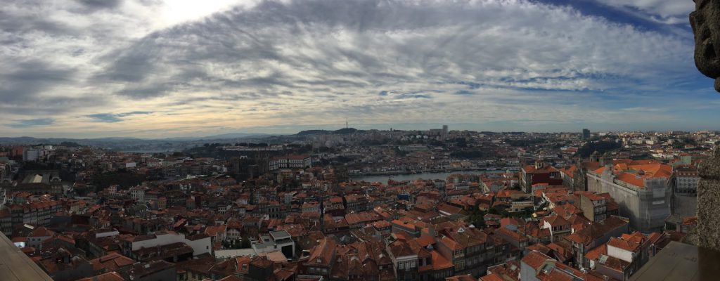 L’ascension de cette tour vaut la chandelle car à l’arrivée la vue à 360° sur Porto et le Douro est imprenable. A faire par temps clair ou quand le ciel offre de jolis nuages comme sur ma photo.