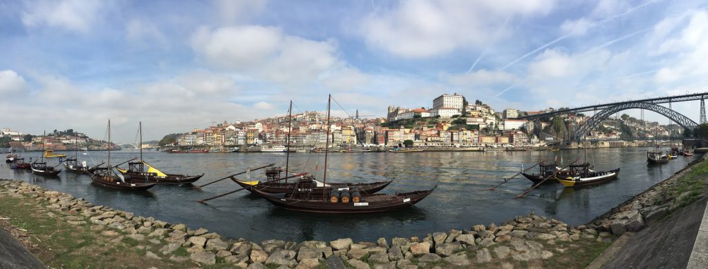 On démarre au pied du Pont Dom Luis II et on fait une boucle jusqu’à l’embouchure du fleuve. La vue est évidemment superbe puisqu’on découvre Porto dans son ensemble : les bords du fleuve et leurs maisons typiques toutes colorées et collées les unes aux autres. Puis plus en hauteur quelques clochers et monuments imposants. Et de l’autre côté toutes les caves et leurs grandes enseignes.