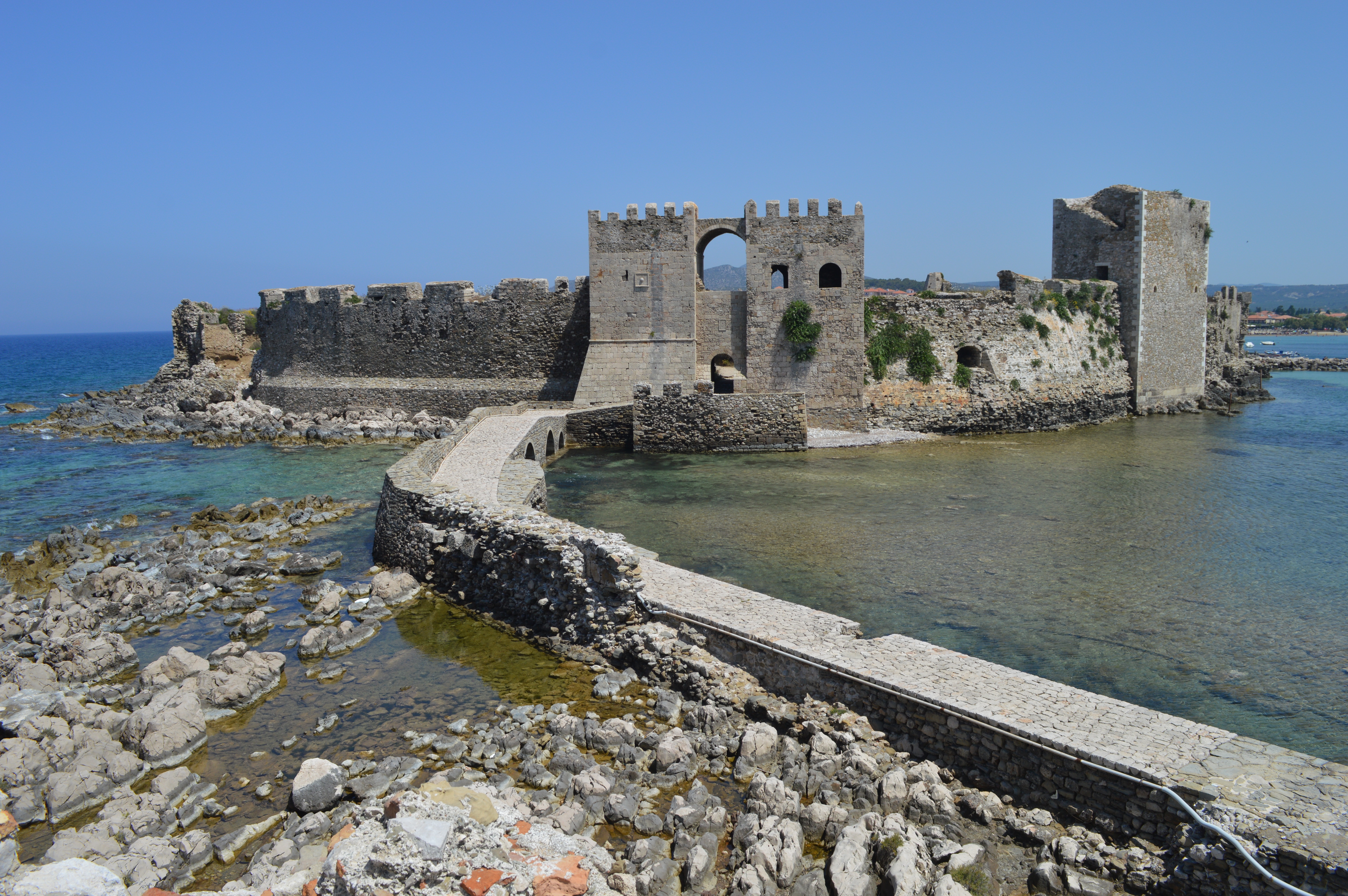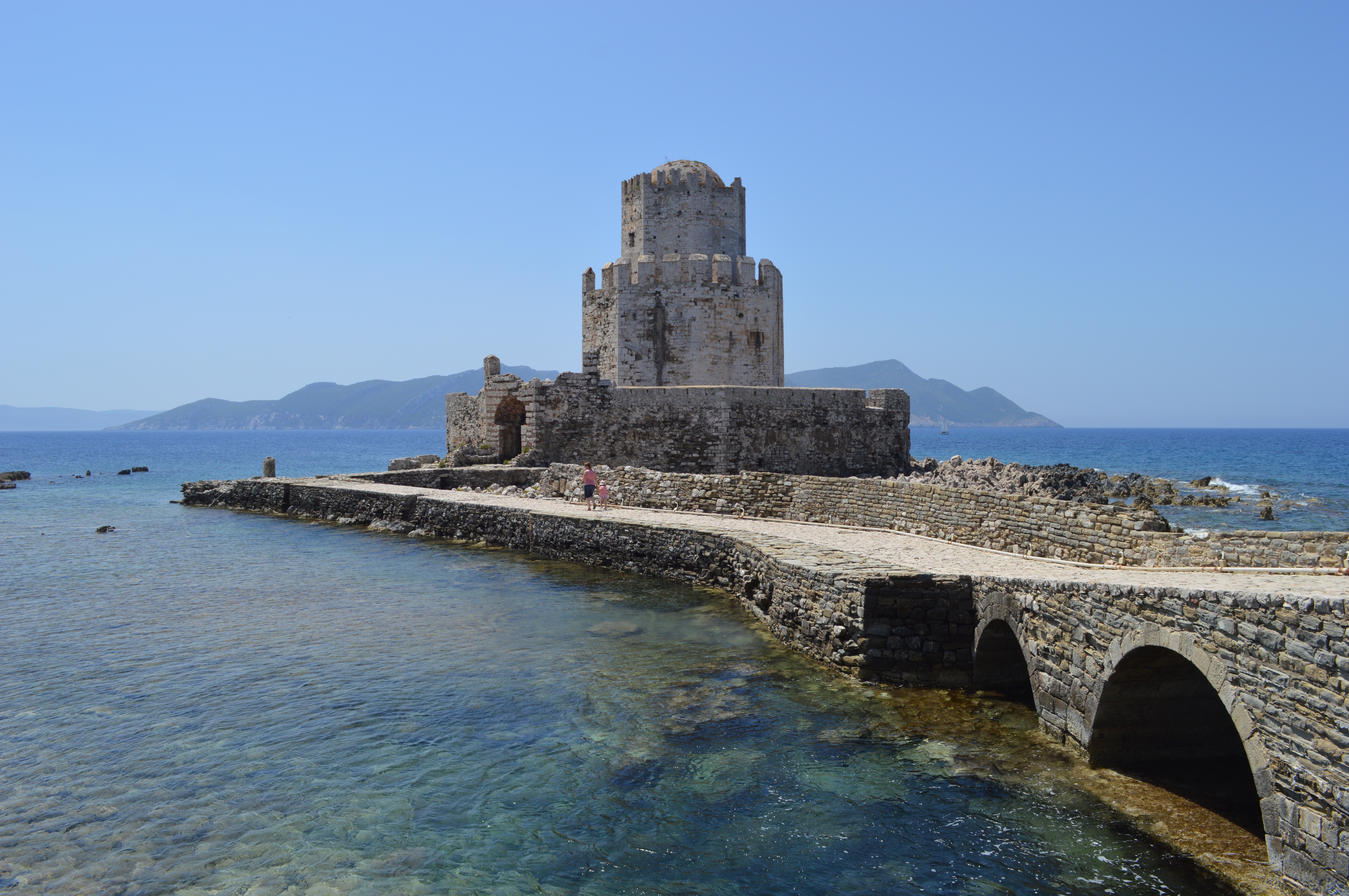 Mon plus gros coup de coeur de ce road trip autour du Péloponnèse! Le château de Methoni est tout simplement superbe. Peut-être avons nous eu de la chance en visitant cette forteresse en juin, lorsque toutes les plantes sauvages sont en fleur ? En tout cas le tableau était bucolique à souhait : fleurs violettes, jaunes et blanches à foison, site très bien conservé, eau cristalline… quelle beauté !