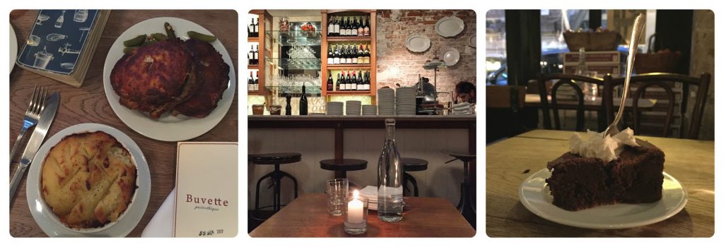 « Buvette gastrothèque », un drôle de nom pour un concept terriblement efficace ! Déco chiadée, musique rétro et une carte de plats et pâtisseries réussis et copieux. On valide le fameux croque-monsieur (12€) et la grosse part de fondant choco.